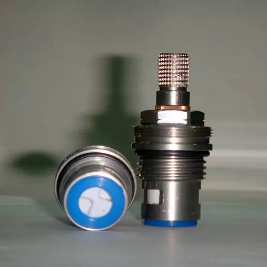 तांबे की सिरेमिक डिस्क नल वाल्व कार्ट्रिज; इंसर्ट ग्लैंड फिट्स; रफ-इन वाइडस्प्रेड वाल्व कार्ट्रिज; तांबे की शैल सिरेमिक कार्ट्रिज; हेडवर्क।